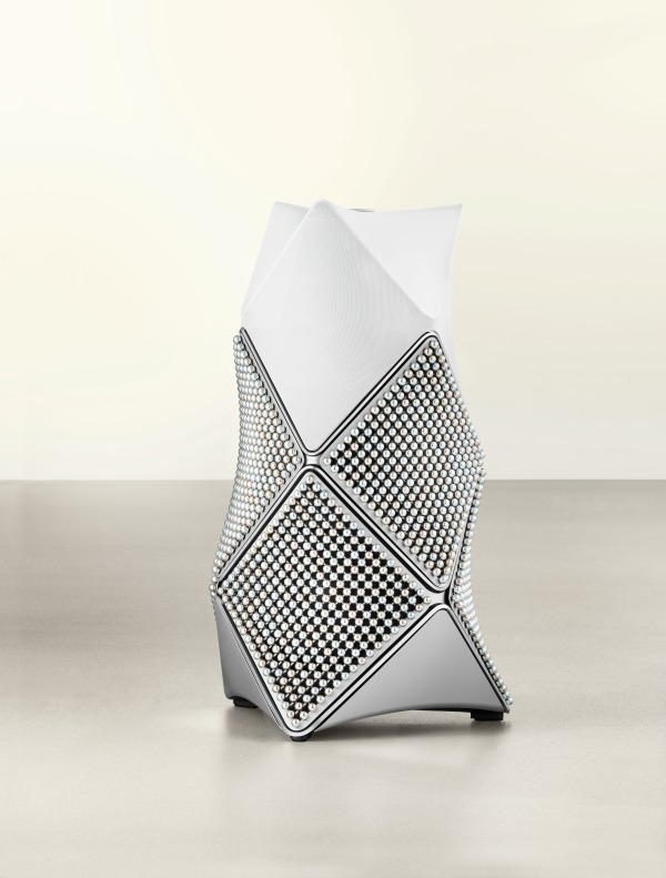 Er du mere til det metalliske og reflekterende, er Zenith Edition et ret vanvittigt bud. Her består seks af panelerne hver især af 289 anodiserede aluminiumskugler, der er arrangeret i syv forskellige perleinspirerede farver. Selve aluminiumsfronten er perleblæst og anodiseret i en mørkegrå farve, der visuelt trækker tråde til en østersskal. Som prikken over i’et afsluttes toppen af højttaleren med et rundt indlæg i ægte perlemor. Det er en højttaler, der i den grad er skabt til at fange og lege med lyset i rummet i løbet af dagen.