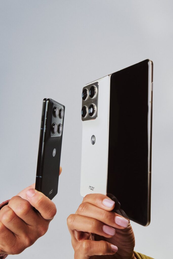 Hvor tidligere foldbare telefoner ofte har måttet ofre kamerakvalitet for at få plads til det komplekse hængsel, beviser Motorola med razr fold, at man kan få det hele. Det er Motorolas første “book-style” foldbare telefon – altså en telefon, der åbner op som en bog og afslører en kæmpe skærm indvendigt.
